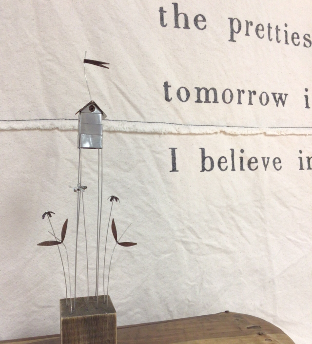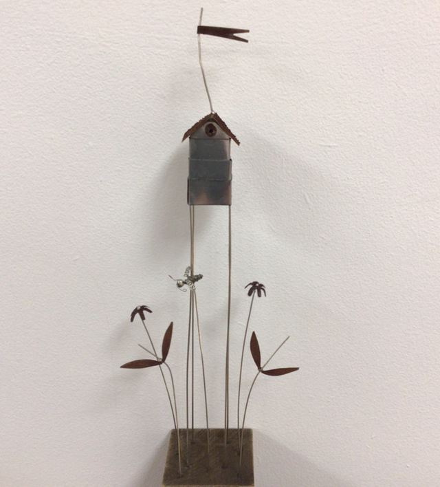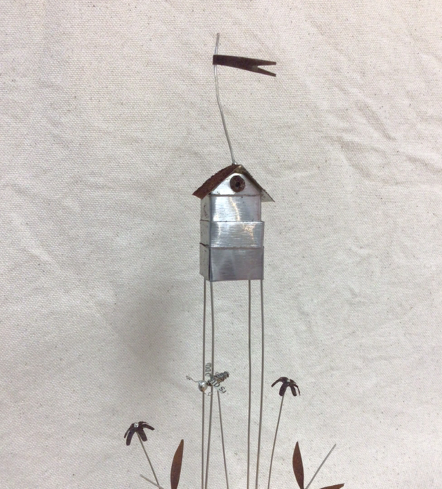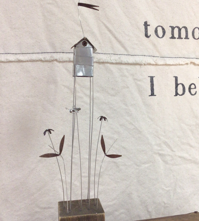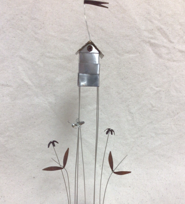 How lovely to sit and gaze at this sculpture. Made by UK artist, using recycled tin, wire and wood. Each piece individually made and unique.