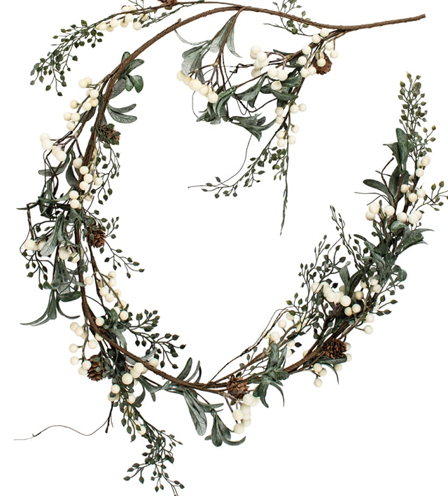 WIth a blend of ‘fauxliage’ and white berries, this characterful and festive garland will bring elegance to staircases or mantelpieces alike.