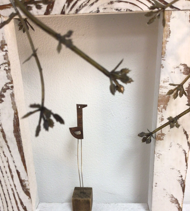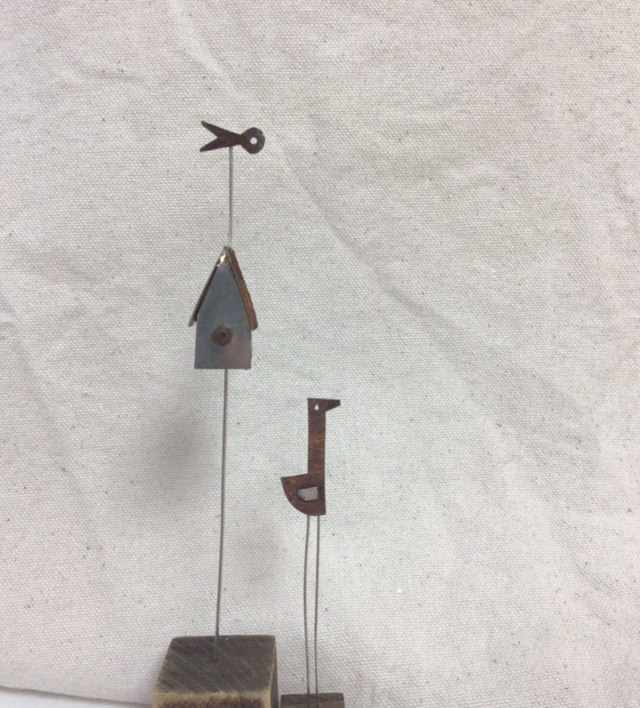 Part of the collection of mixed media decorative objects made from recycled tin, newspaper, wire and paper by Sarah Jane Brown.