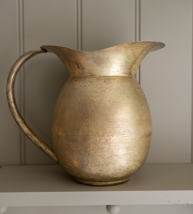 A large brass jug in a traditional style. This jug is beautiful styled alone or with artificial florals.