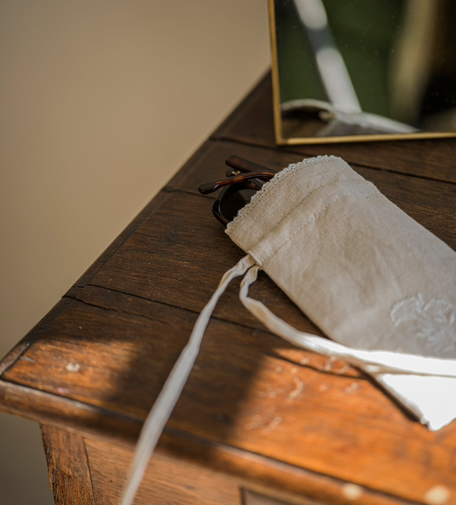 Crafted from linen and lovingly embroidered with a simple cow parsley sprig motif, this lovely glasses case is made with purpose - to make every day life beautiful.