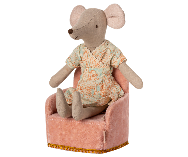 A perfect place for your small Maileg friends to take a rest. It fits nicely into the Mouse hole Farmhouse. The chair is delivered flat packed and is easy to fold and assembly.