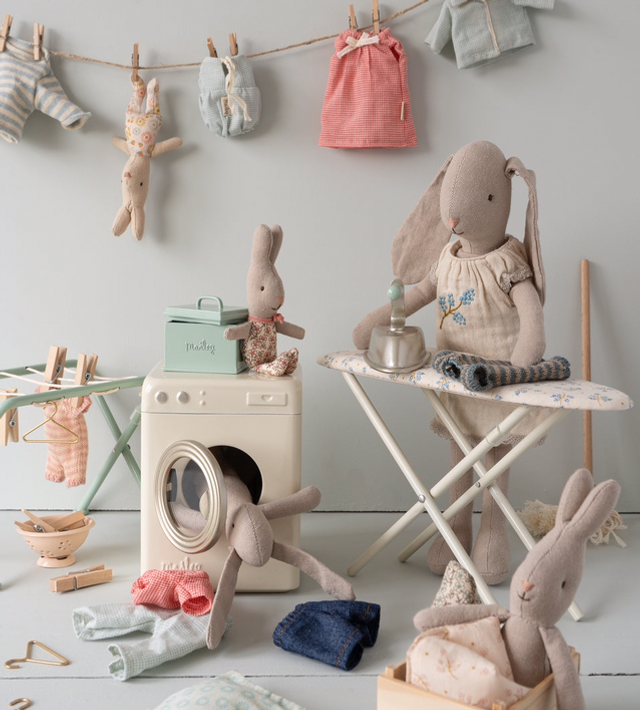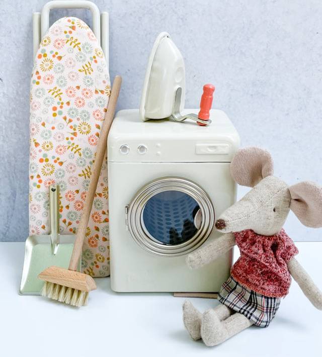 Every busy household needs a helping hand for the laundry - a washing machine is the right solution. It is made in metal and painted in off-white color, with many details that makes it indispensable in the play. Perfect in size for the mouse family.