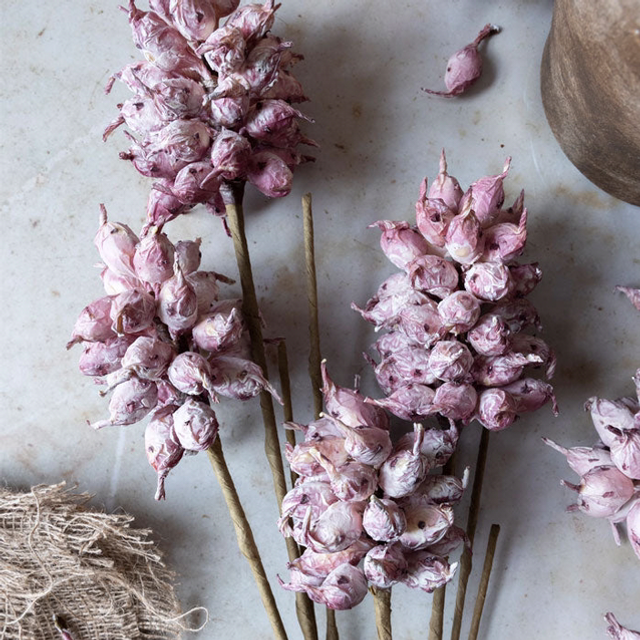 A gorgeous tall and textural stem in a mix of purple and blush pink hues. 2 heads per stem.