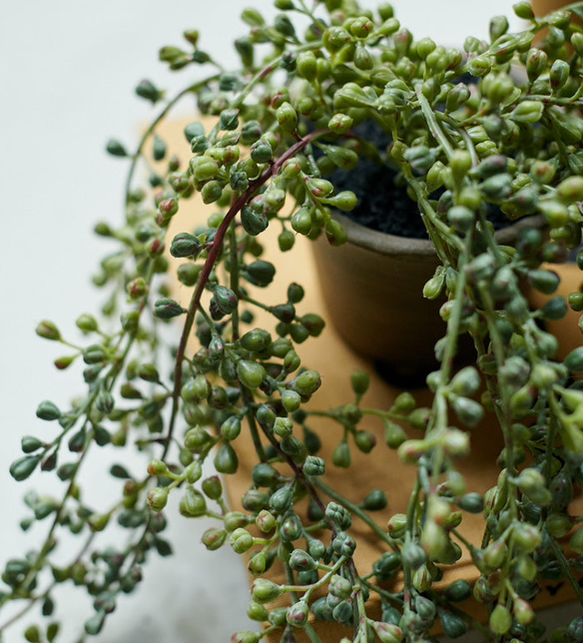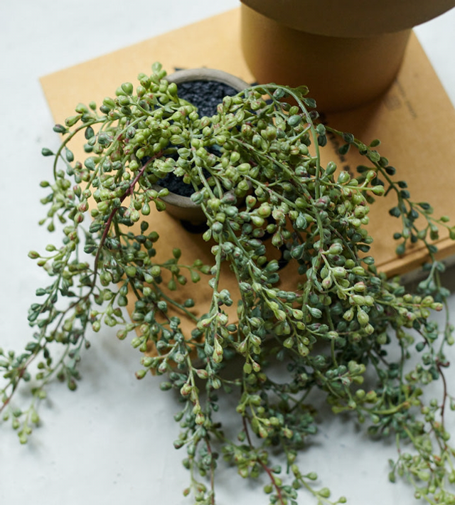 A fabulous plant comprising of abundant tendrils that cascade from the papermache pot. The mass of pod heads creates a visual treat, their delicacy forming a swathe of beauty that is deeply textural and visually so appealing, this is a great plant to decorate your home with.